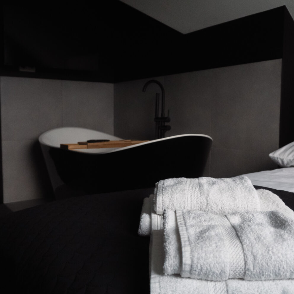 Przestronny domek 70m² z salonem, otwartą kuchnią i dwiema sypialniami na piętrze. Perełką jest wolnostojąca wanna przy sypialni głównej! Taras z grillem i pełne wyposażenie – gotowy na rodzinny wypoczynek.